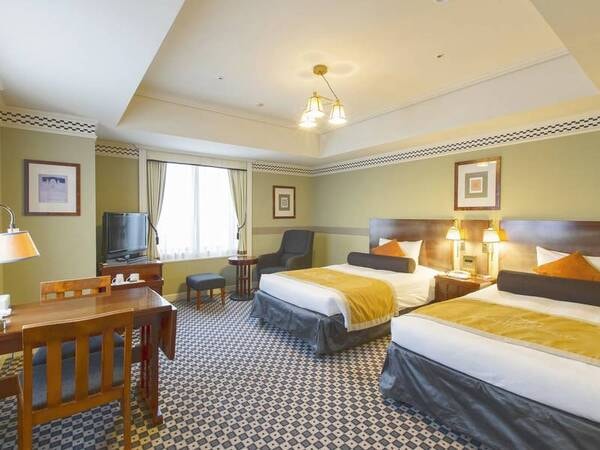 【デラックスツインルーム/例】広さ40平米、家具にこだわった角部屋にご案内