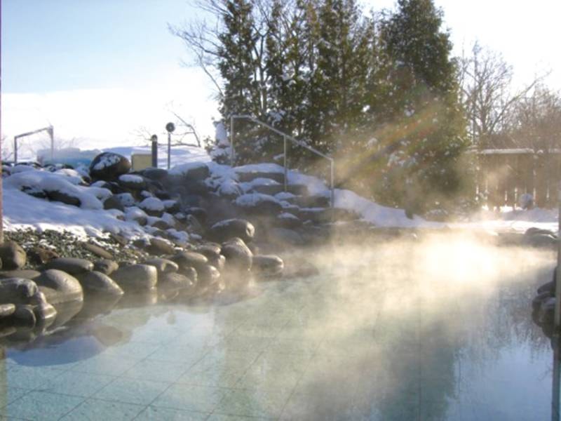 時期になると展望露天風呂の周辺はもちろんのこと、はるか先にそびえたつ大雪山連峰の山々にも雪がおおわれる。そんな雄大な景色を楽しみながらの入浴が楽しめる。また、夜には雪見と星観賞を楽しめることもある。