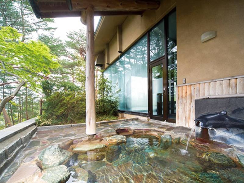 | お知らせ | 赤松林に囲まれ、自然の息吹を感じながらゆったりと入浴できる大浴場です。 |