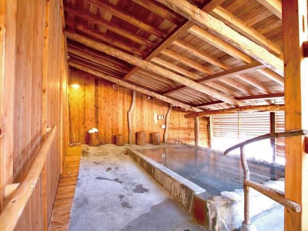 【わたり湯】ヒノキ薫る湯治場風の内湯(女性;半露天風呂、男性;露天風呂あり)