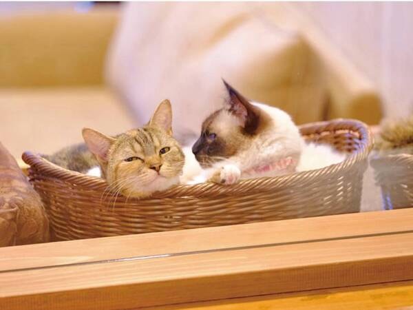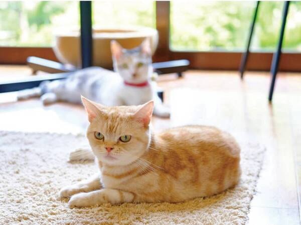 (客室2階、1階のねこカフェ・食事処へ移動は階段となります。お食事処から貸切風呂までは渡り廊下(屋根あり)から、徒歩1~2分のご移動を頂きます。)
