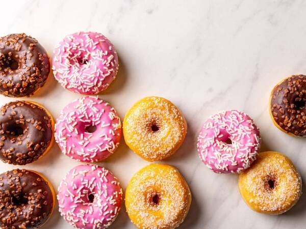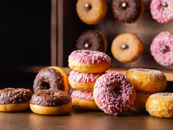 朝食ブッフェ。見た目がポップなドーナツは味にも自信あり