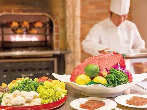 石窯ブッフェ。長時間の低温調理でじっくり焼き上げる特製「厚切りローストビーフ」。柔らかく食べ応えもある逸品