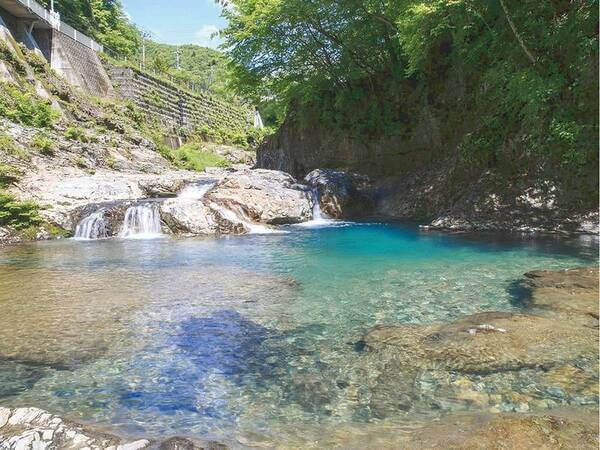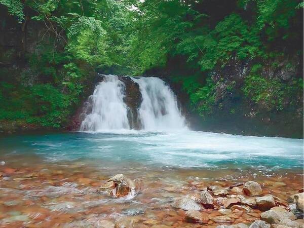 【周辺 大泉の滝】当館から車で約3分 透き通った水と流量が魅力の滝で癒しの時間を