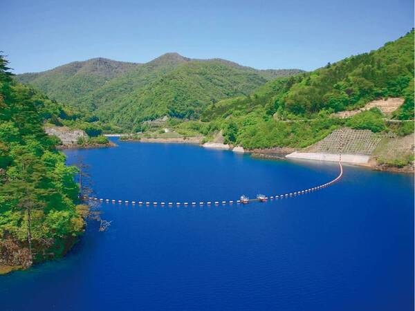 【周辺 奥四万湖】展望台まで当館から車で約6分 季節に彩を添える木々とコバルトブルーの水面が魅力