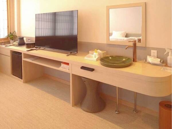 【ツインベッド和洋室・赤城】客室内にはパウダーエリアも お出掛け前も落ち着いてご用意いただけます