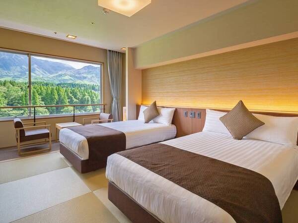 【和室ツイン/例】琉球調の畳の上にシモンズ製セミダブルベッド2台を備えたモダンなタイプ