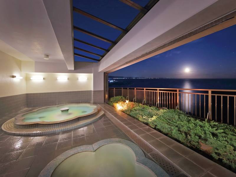 | お知らせ | ※展望露天風呂は、「海や空の景色と遊ぶ場所」と位置付けておりますので、体を洗うスペースを設けておりません。1階の大浴場をご利用の上、おいでください。 |