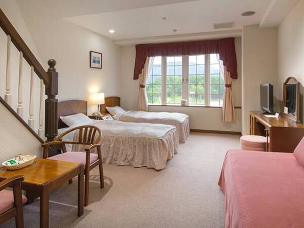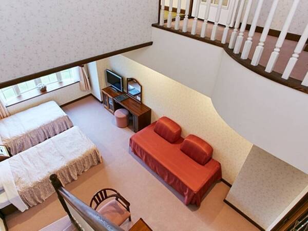 【スタンダードルーム・メゾネット/例】ご家族やお友達同士、団体様など大人数でお泊りのお客様には2階建て形式のメゾネットルームをご用意。