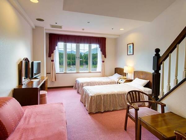 【コルチナルーム・メゾネット/例】2階建てのメゾネットタイプのお部屋を優雅に使う、デラックスルームはお洒落な内装のワンランク上のお部屋。