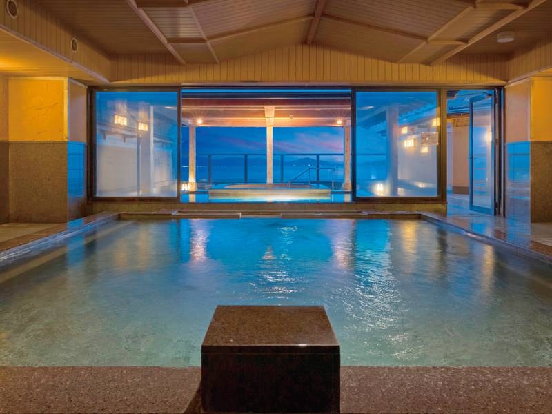 ジャグジー・サウナに加えて、露天風呂からは絶景の三河湾を眺めつつ、湯の贅を味わう
