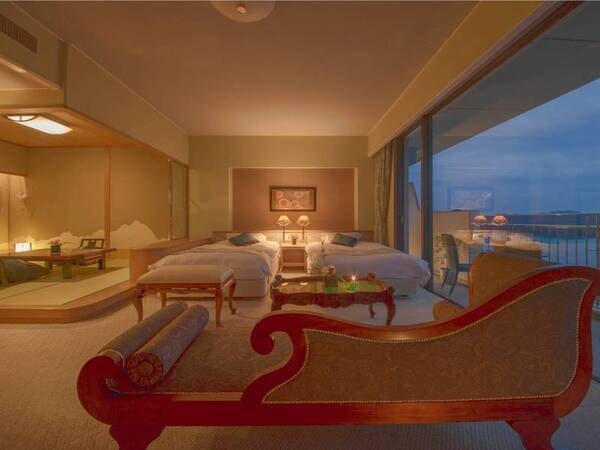 【三大味覚会席の夕食/例】◆伊勢海老お造り(大人おひとりごとに1尾)◆あわび(大人おひとりごとに1尾)◆松阪牛の三大味覚が付いた量より質を重視したプラン