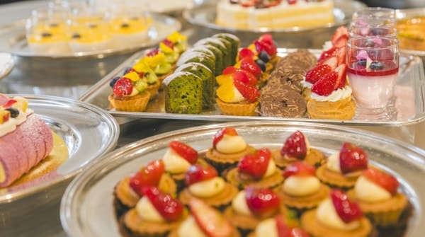 シェフこだわりのスイーツを朝食でも。 一つひとつ丁寧に並べられたデザートたちに思わず笑顔。朝からときめく甘さをお楽しみください。