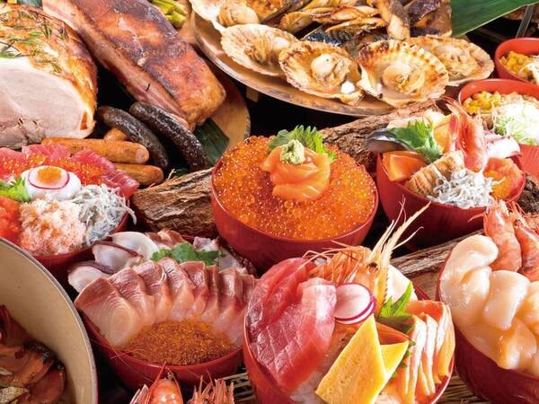 【夕食バイキング/例】道南の食材を中心としたバイキングは約150種類