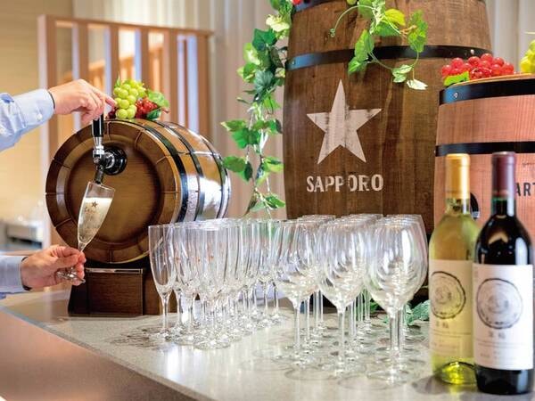 朝食はスパークリングワイン・ワインも飲み放題/例
