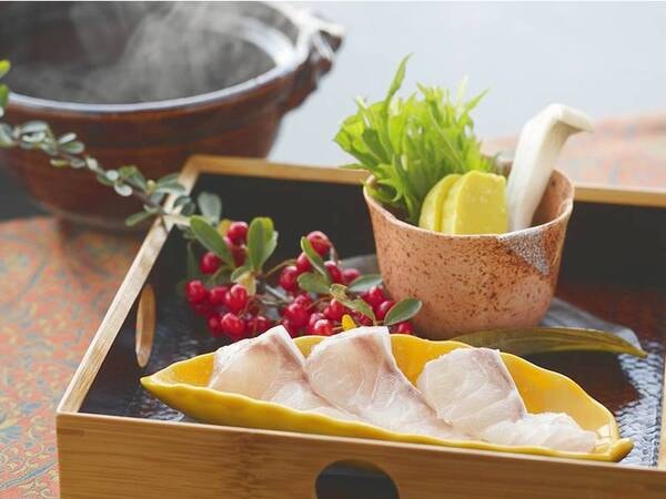 【クエしゃぶしゃぶ】上質でとろけるような甘み“繊細な味わい” をお口いっぱいに♪ (お料理イメージ)