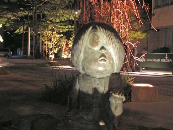 リニューアルした水木しげるロード。夜10時まで妖怪のライトアップで恐怖と面白さ倍増!当館から車で5分。