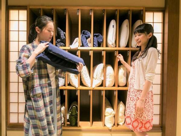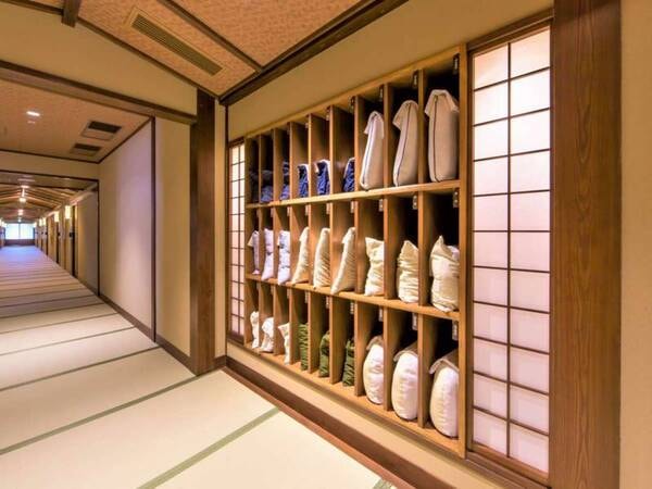 【おもてなし:枕処】各階にございます。お好きな枕をお選びくださいませ。