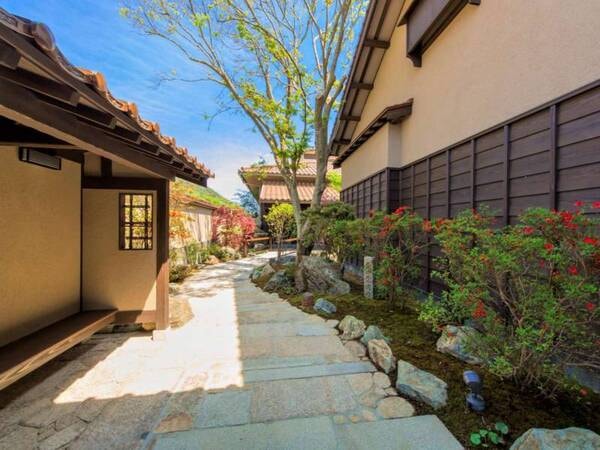 【玄関】四季折々の景色を愉しめる小路。出雲神話の空間へ皆様を誘います。