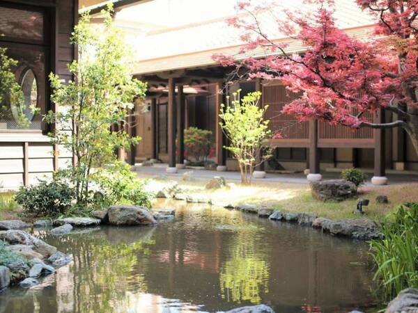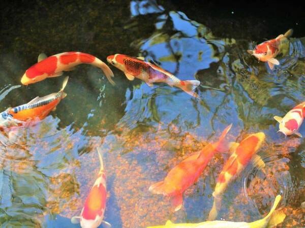 【中庭】池には鯉が泳いでいます。