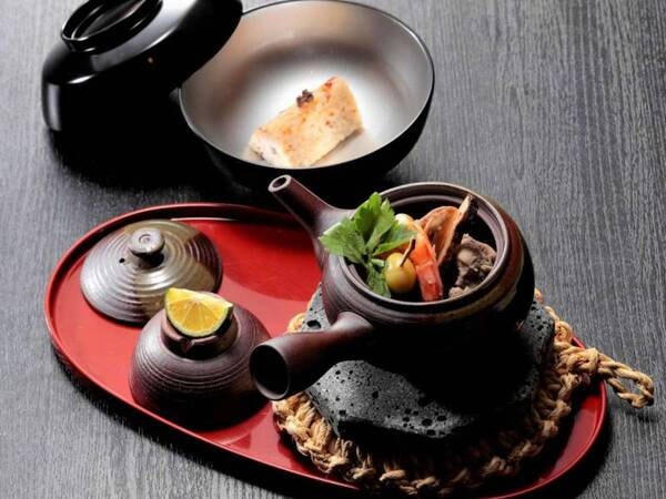 【旬替わり会席~先椀~】土瓶蒸し ※まずは、お猪口でそのまま出汁を♪急須の具材はお召し上がりいただけます。※画像・メニューは一例、変更の場合あり