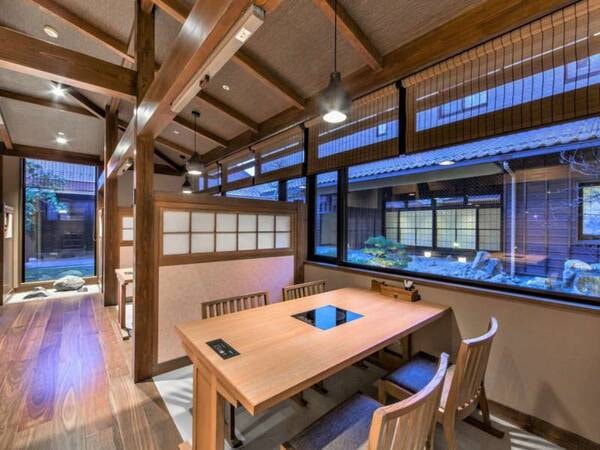 【食事処 天雅】お庭を眺めるカウンター席もございます。
