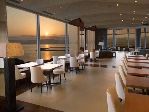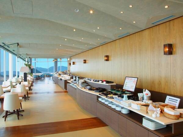 【スカイラウンジ トップ オブ ヒロシマ】瀬戸内海と広島市内を一望できる景色を眺めながらお楽しみいただく朝食&夕食ブッフェ。