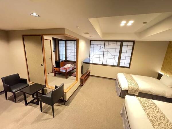 洋室プレミアムルーム/例 格納ベッド3台を使用すると、合計7名様ご宿泊いただけます