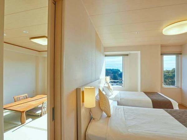 【露天風呂付特別和洋室(例)】和室とツインルームの異なる雰囲気を楽しめます