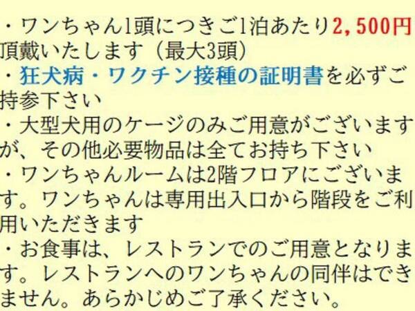 ご予約の前に、ワンちゃんのご宿泊利用条件をご確認ください。