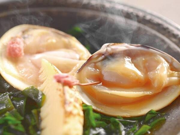 【3~5月】土地の恵み会席/蛤若竹酒蒸し 愛友酒造の酒粕ポン酢例