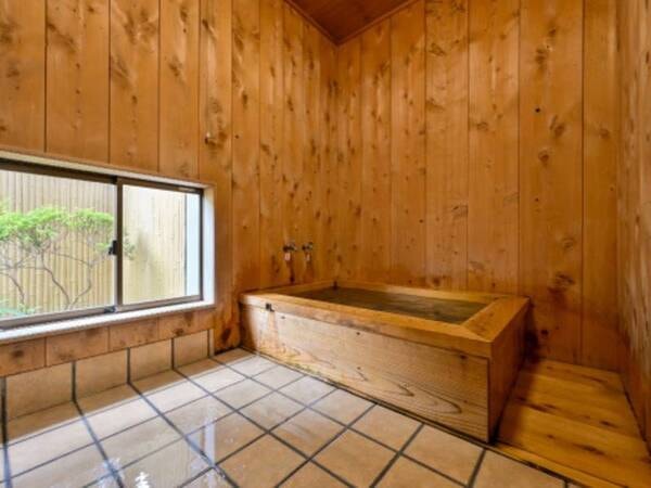 【芳泉】客室のお風呂は、広々とした檜風呂をご用意