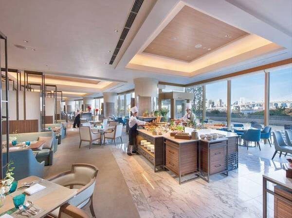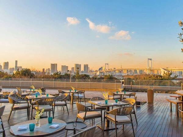 【エグゼクティブラウンジ】屋外テラススペースや大きな窓から東京湾の眺望を楽しめる