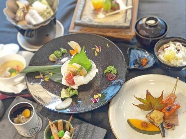 【塩江 紅葉/例】宿から車で約10分、奥の湯公園や岩部八幡神社などにて楽しめる。見頃は11月中旬より