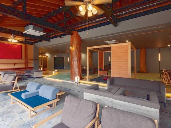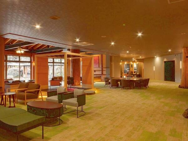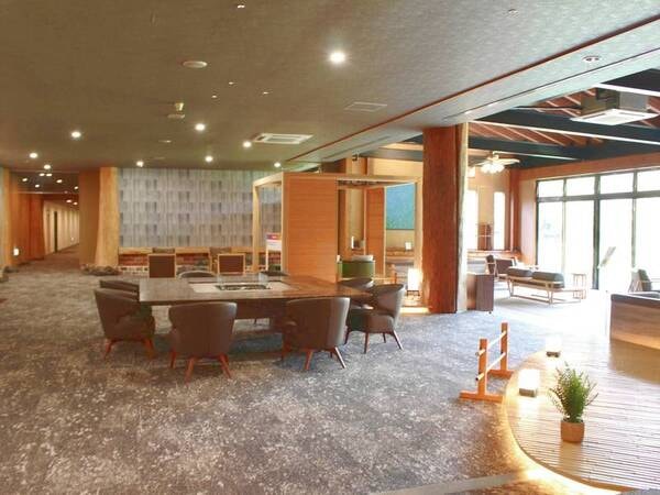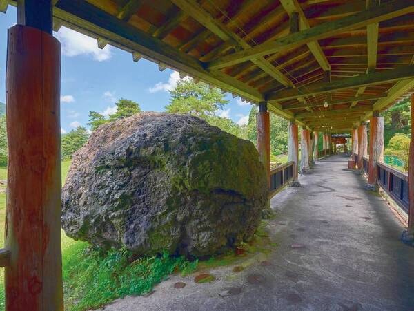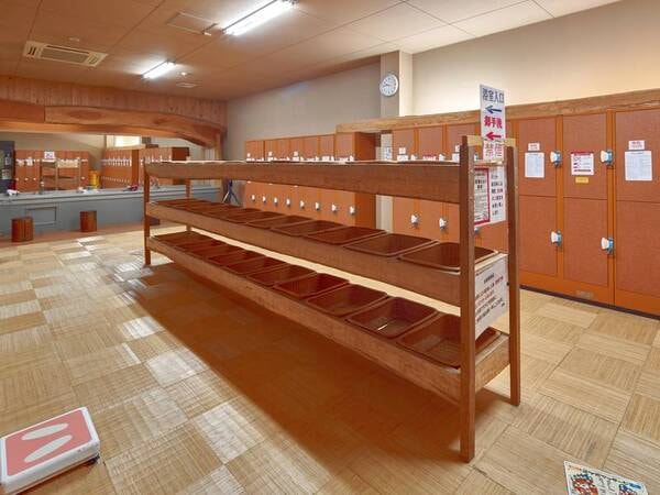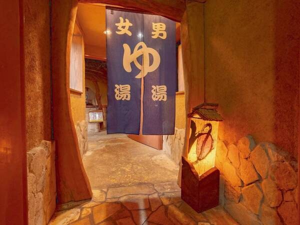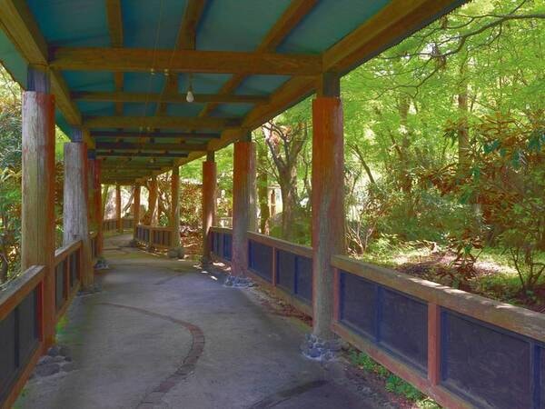 当日無料で利用出来る日帰温泉施設「どんどこ湯」は別棟にあり、フロントから約70mの距離があります。※宿内にも大浴場はございます
