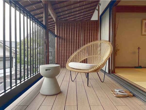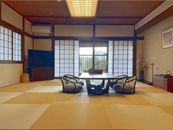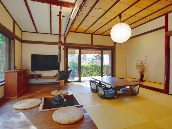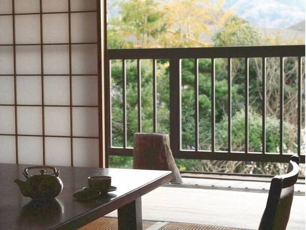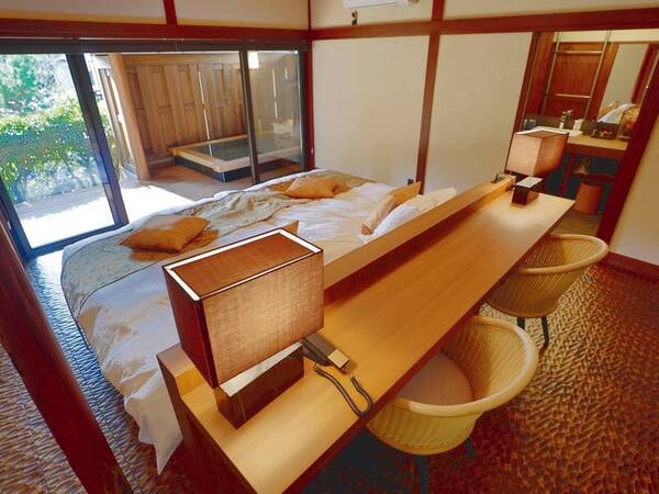 【離れ和室/例】庭園を望む、源泉かけ流し檜風呂(内湯)付きのモダン客室