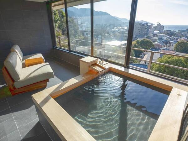 【詩季亭客室/例】大浴場のある本館からは少し離れるものの、高台に位置しているので駿河湾と土肥の街並みを一望!