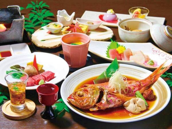 【夕食/例】『金目鯛のあたみ煮』と贅沢『和牛の溶岩焼き』の2大メイン!