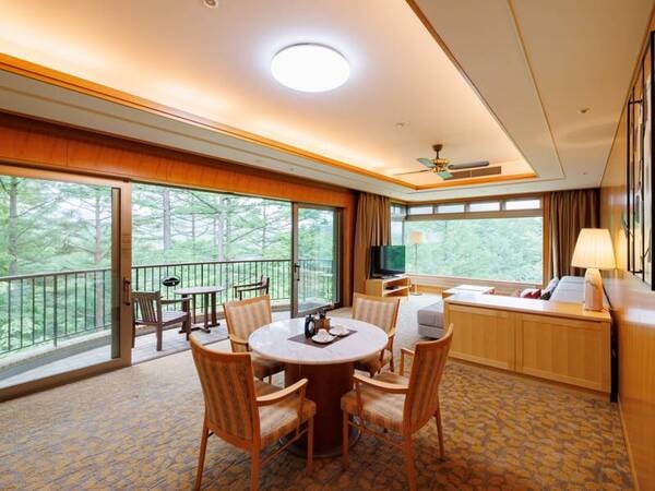 【【禁煙】スイートルーム】大きな2面の窓からは軽井沢の自然を身近に感じられます。