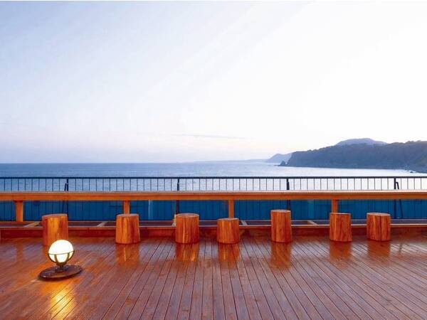 屋上のテラスで海を眺めながらの足湯はいかがですか。※利用時間 14:00~21:00/6:00~9:00 ※夏場は足水 ※悪天候時はclause