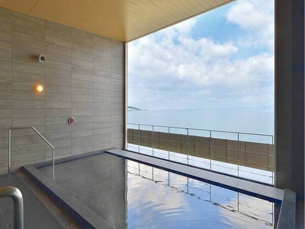 客室と大浴場は別棟で、客室棟から館内の渡り廊下を20mほど移動です。
