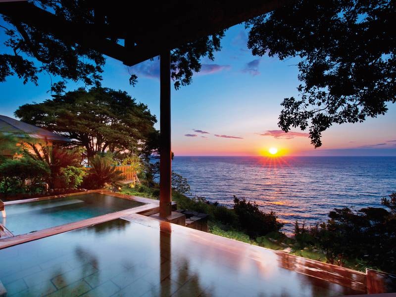 空・海・緑につつまれた絶景露天風呂をはじめ6つの湯・ 源泉かけ流しが宿の自慢