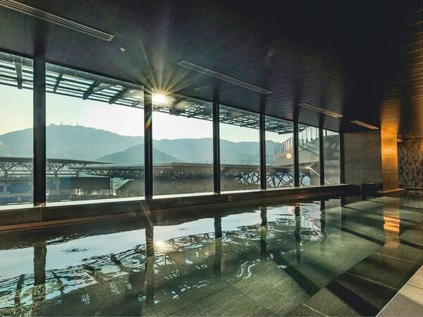 【6階 大浴場/夕景(天然温泉)】泉質はアルカリ性単純硫黄温泉で、お肌がつるつるになる「美人の湯」と呼ばれます。※天然温泉を加温・加水・循環濾過して上質な泉質を保っております。