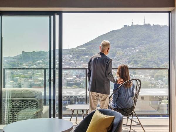 【スイートシティビュールーム/例】大きな窓から長崎の夜景を一望!