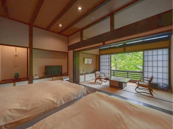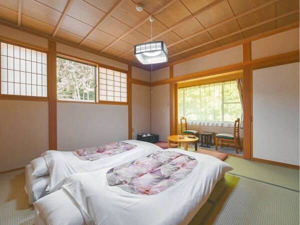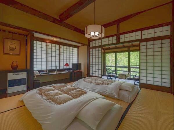 【特別室<花梨>/例】和室10畳+2畳。1階に位置し、白樺林が目の前に望めるお部屋