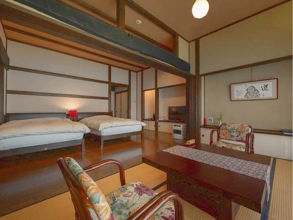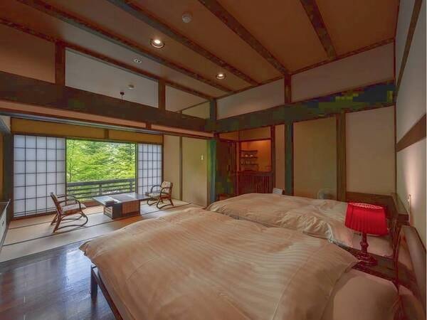 【離れ<座忘庵十石>/例】ツイン10畳+4畳。当館唯一のベッドタイプのお部屋