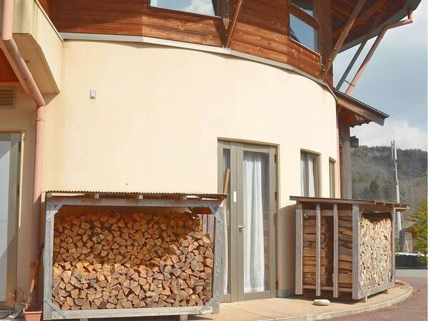 【ロビー/暖炉】薪活!ロビーには薪を使った暖炉がございます