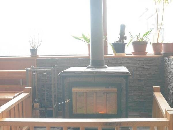 【ロビー/暖炉】館内には暖炉も設置しております。薪式暖炉のゆらめく炎が暖かくしてくれます。