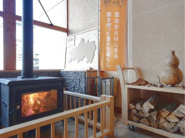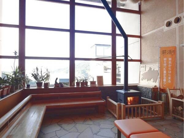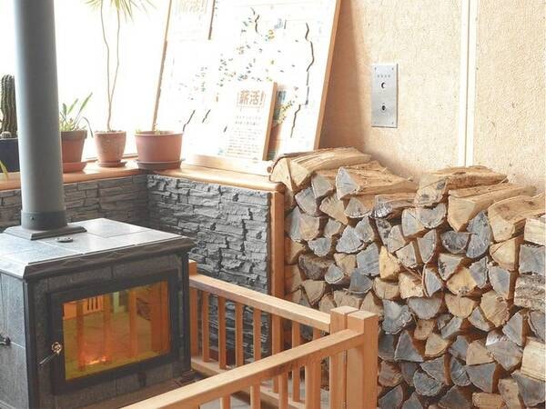 【ロビー/暖炉】館内には暖炉も設置しております。薪式暖炉のゆらめく炎が暖かくしてくれます