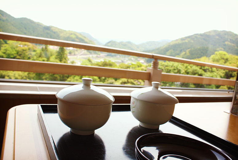 「山草花のおもてなし」とは - 大谷山荘では創業以来「山草花(さんそうか)のおもてなし」という姿勢を大切にしています。これは、まるで野に咲く花のように、華美ではないのに心癒される…そんなあたたかな歓待のこと。例えば、チェックインの際の抹茶とお菓子のサービスでは、妊婦さんにはカフェインフリーの梅こぶ茶に変更するなど、さり気ない配慮が行き届きます。